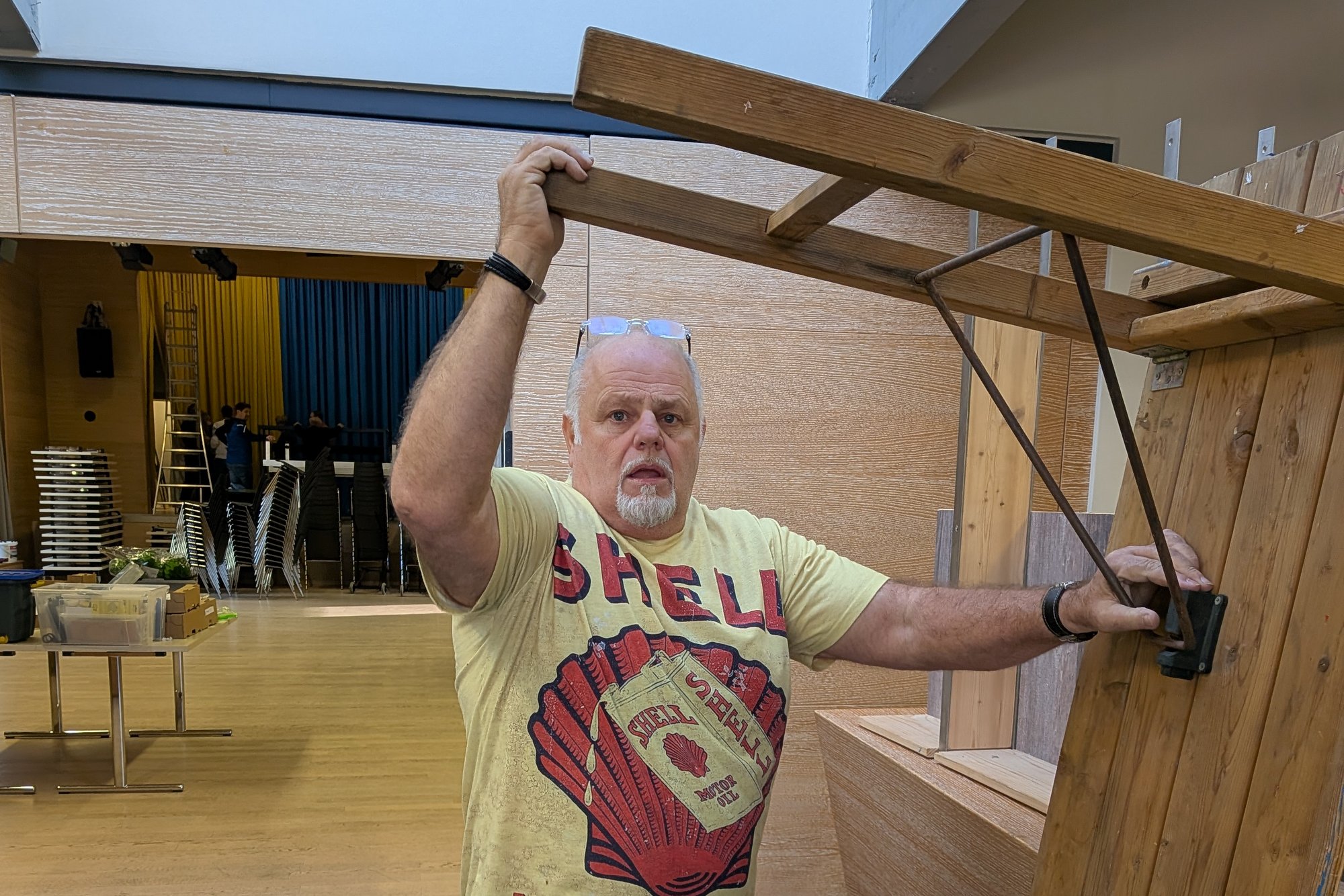 Geschafft! Die Aufbauarbeiten im Kultursaal Lavamünd sind abgeschlossen und alles steht bereit für den Fasching. Bühne, Technik und Deko sind an ihrem Platz – jetzt kann’s richtig losgehen!
