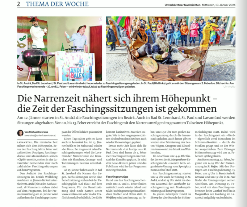 Fasching in Lavamünd ist heute! Lei-lei-blau!